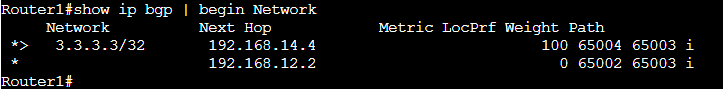 Router1(config-router)#neighbor 192.168.14.4 route-map SET_WEIGHT in