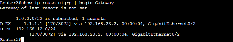 Router3で再配布されたEIGRPルート情報のみ受信するようになりました。