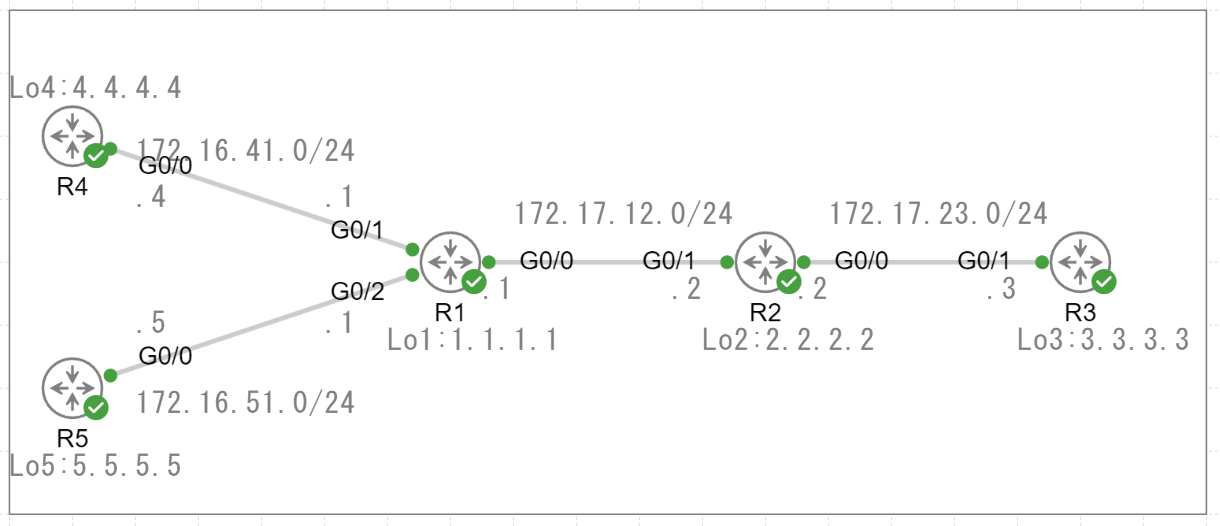 R2のルート情報で、172.16.41.0/24と172.16.51.0/24の経路が集約されて172.16.0.0/16となりました
