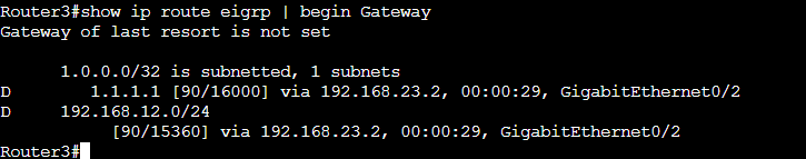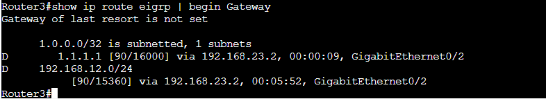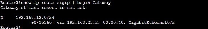 現在のRouter3のEIGRPのルーティングテーブルは以下のようになっています。