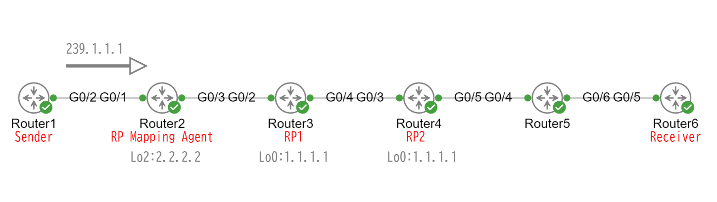 Router2をRP Mapping Agent、Router3とRouter4をRPとして設定します。