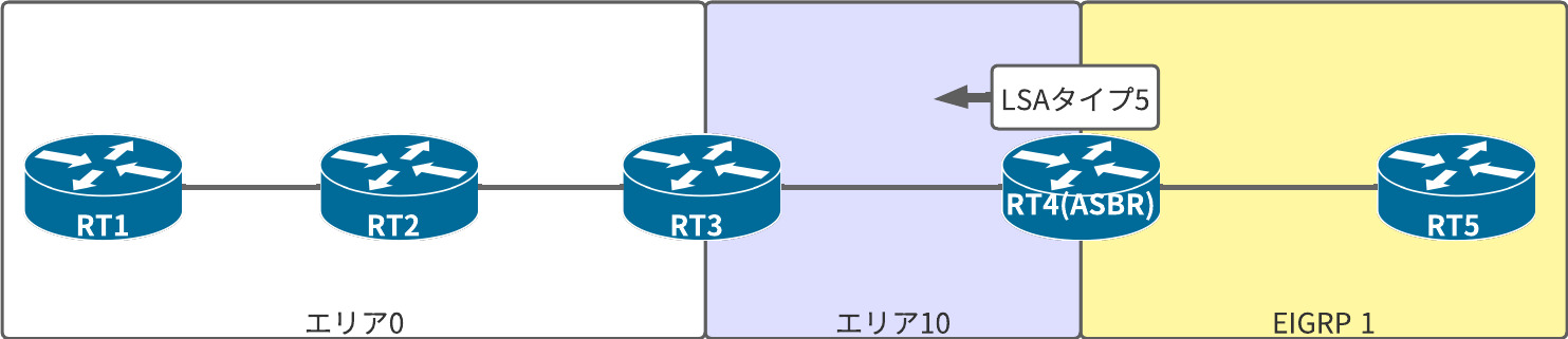 | 4 | ASBR Summary LSA | ABR | ASBRのルータID、コスト | OSPF全体 (スタブエリア、NSSA除く) |