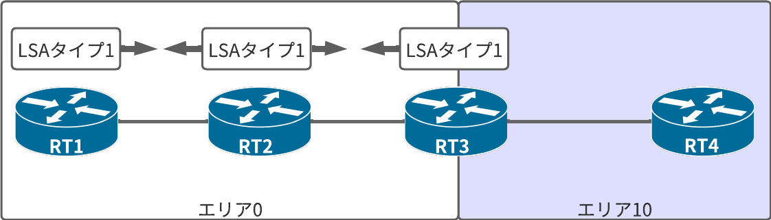 Router LSA(Type1)は全OSPFルータが同一エリア内にフラッディングします。