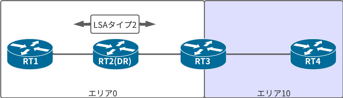 Network LSA(Type2)はDRルータが同一エリア内にフラッディングします。