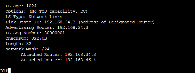 show ip ospf database networkの実行結果(LSA Type3の確認)