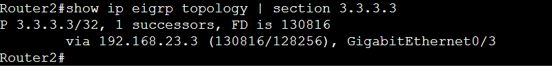 - EIGRPはこのサクセサの情報をルーティングテーブルに格納し、実際にトラフィックを転送する際に使用します。