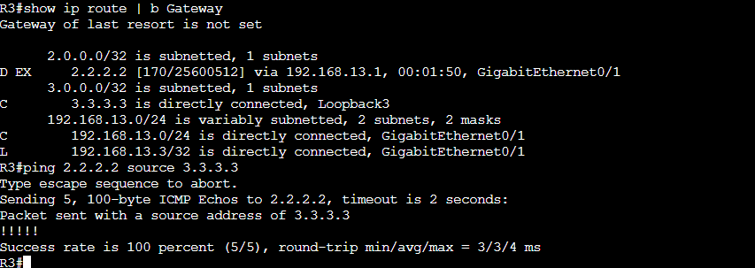R3のルーティングテーブルにもR2のLoアドレスが表示され、通信できるようになりました。