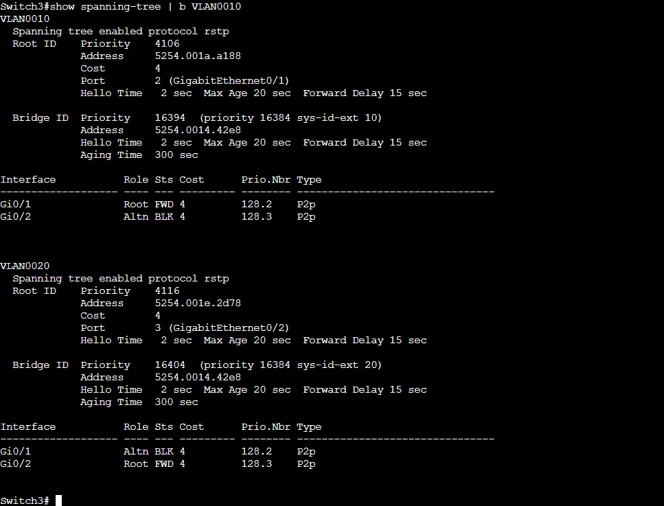 Switch3(config)#spanning-tree vlan 10,20 priority 16384