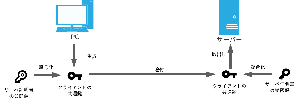 以降の通信は共通鍵を使って暗号化通信を行います。