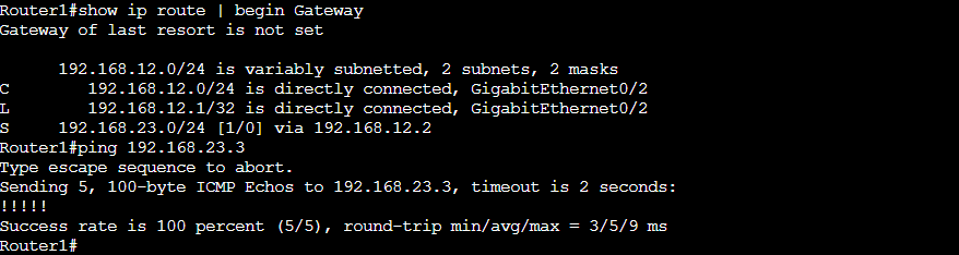 Router1(config)#ip route 192.168.23.0 255.255.255.0 192.168.12.2